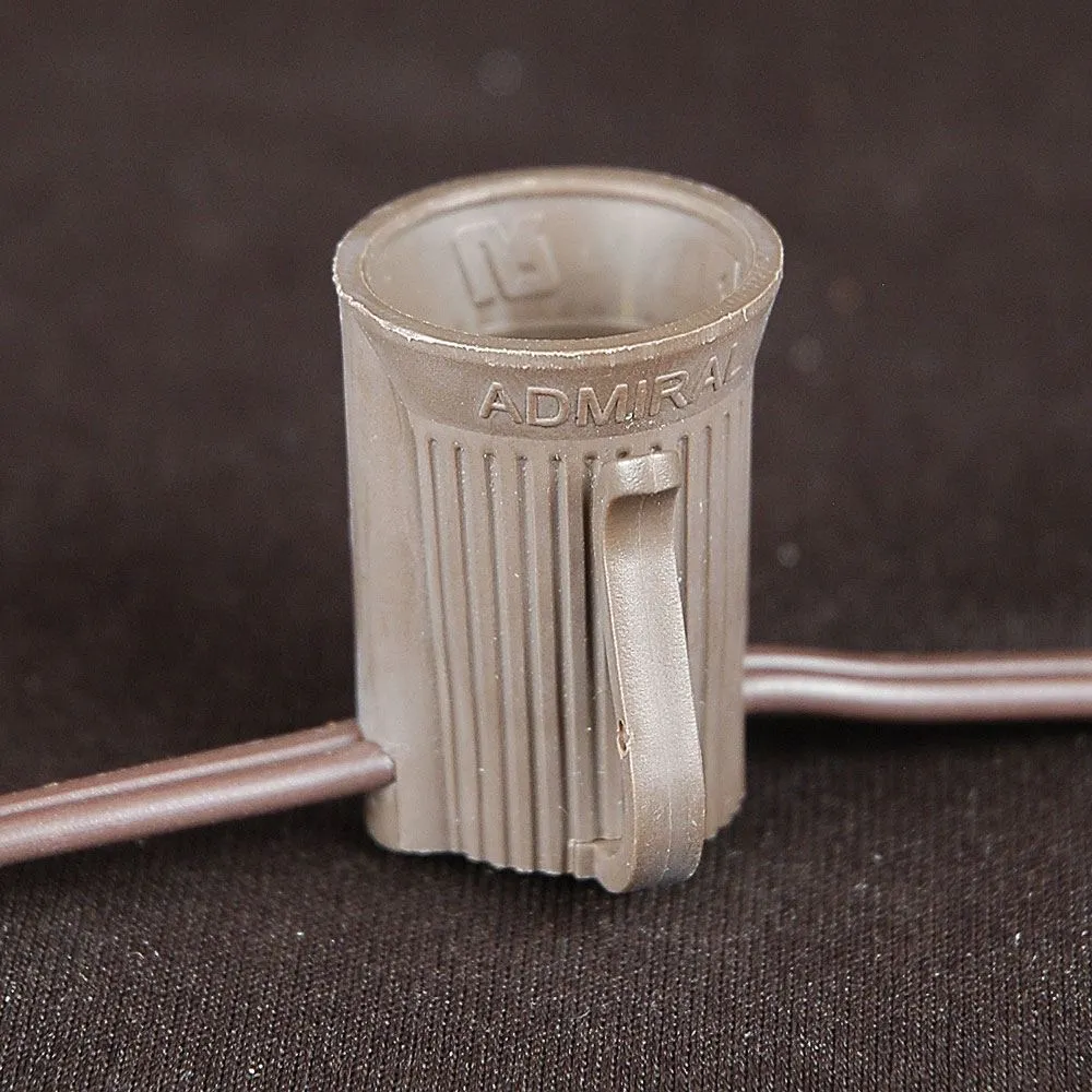 Buy Novelty Lights vintage ceramic green C9 string light set with brown wire that is 100 feet long. This traditional Christmas light set will make your holiday decorating easy, bright and beautiful. Each set includes 125 C9 ceramic bulbs and a brown wire stringer with 100 sockets that are spaced 12″ apart. These hard-to-find painted incandescent Christmas lights will bring you back to your childhood. Novelty Lights ceramic green C9 Christmas light sets have long lasting 3000 hour bulbs and are on a 18 gauge brown wire. All of our C9 light strings use patented Admiral Brand sockets. These durable and heavy duty light strings will provide you with years of maintenance free use. Each Set includes 25 FREE replacement bulbs.