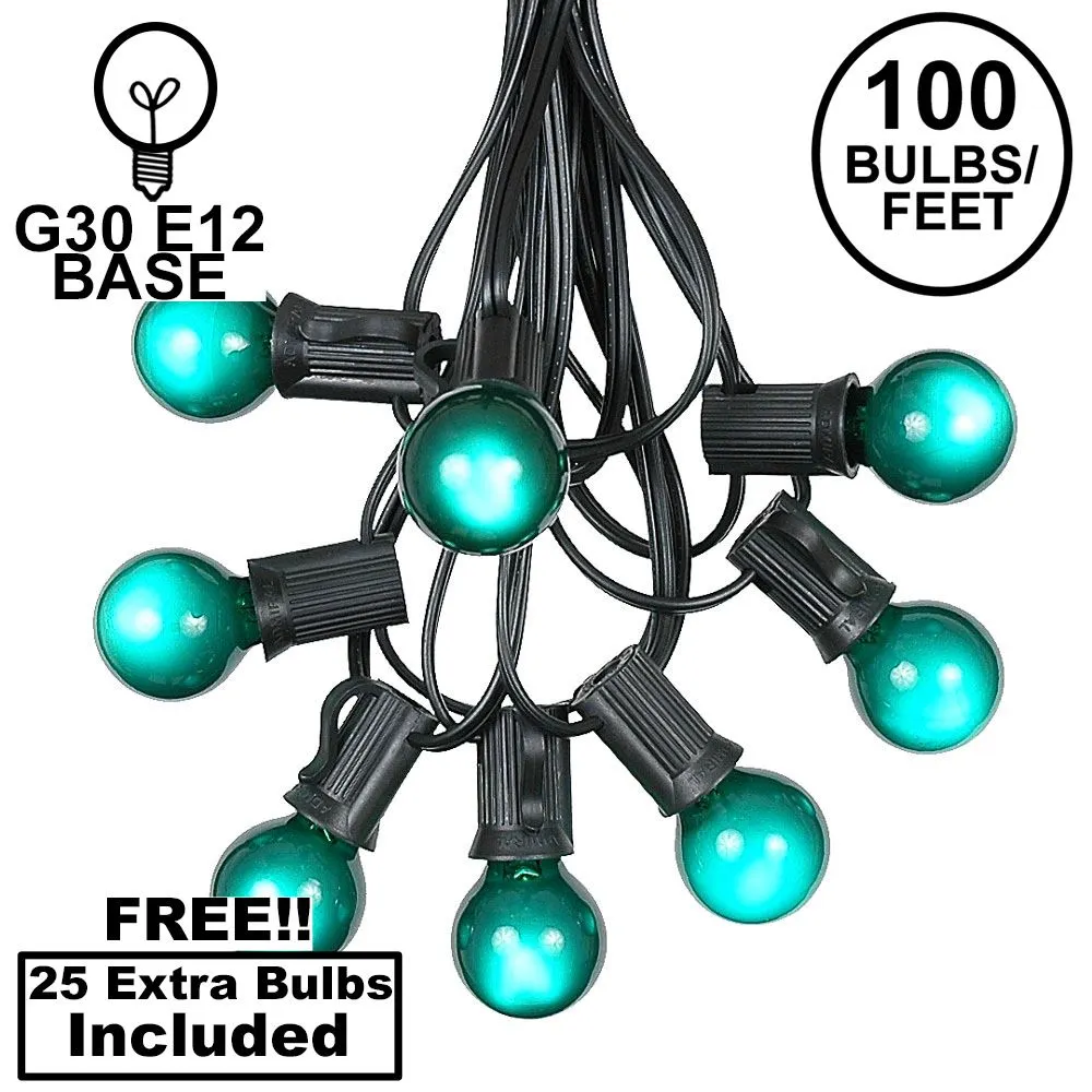 100 G30 Globe String Light Set With Green Satin Bulbs On Black Wire