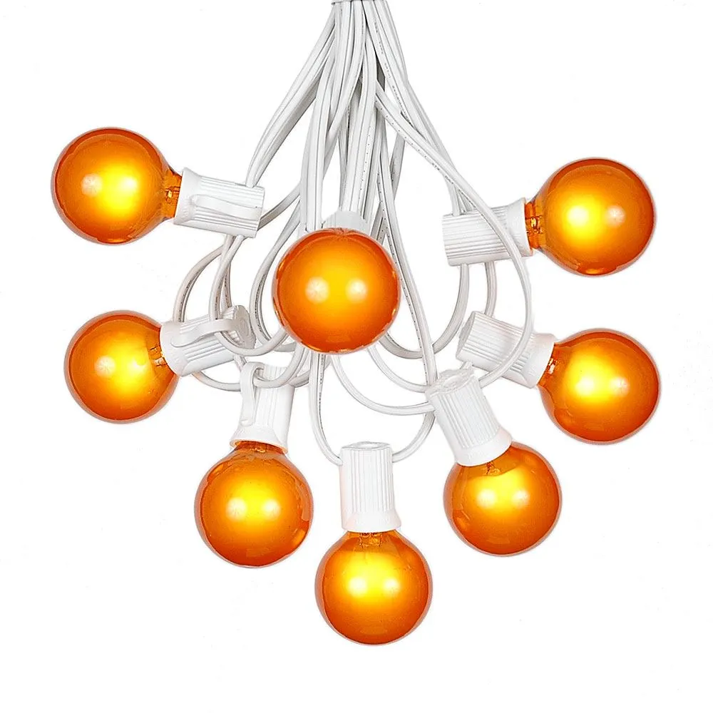100 G40 Globe String Light Set With Orange Satin Bulbs On White Wire