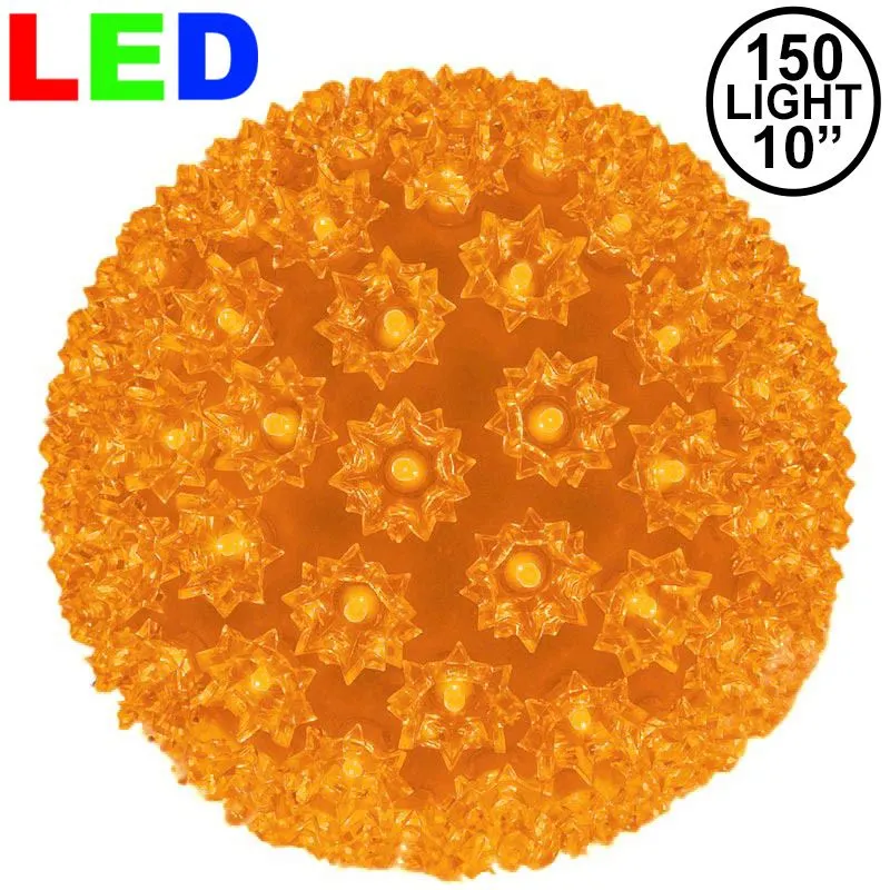 Buy a 150 light orange LED starlight sphere for both indoor and outdoor use. These durable and energy efficient orange LED Christmas light balls have the same high quality wide angle LED’s that we offer in our commercial grade LED mini lights. These 10 inch 150 light orange LED starlight spheres have a stackable male plug for powering additional spheres and a 12′ lead cord. Mix and match colors and sizes to create unique and energy efficient outdoor light displays this holiday season and for many seasons to come!