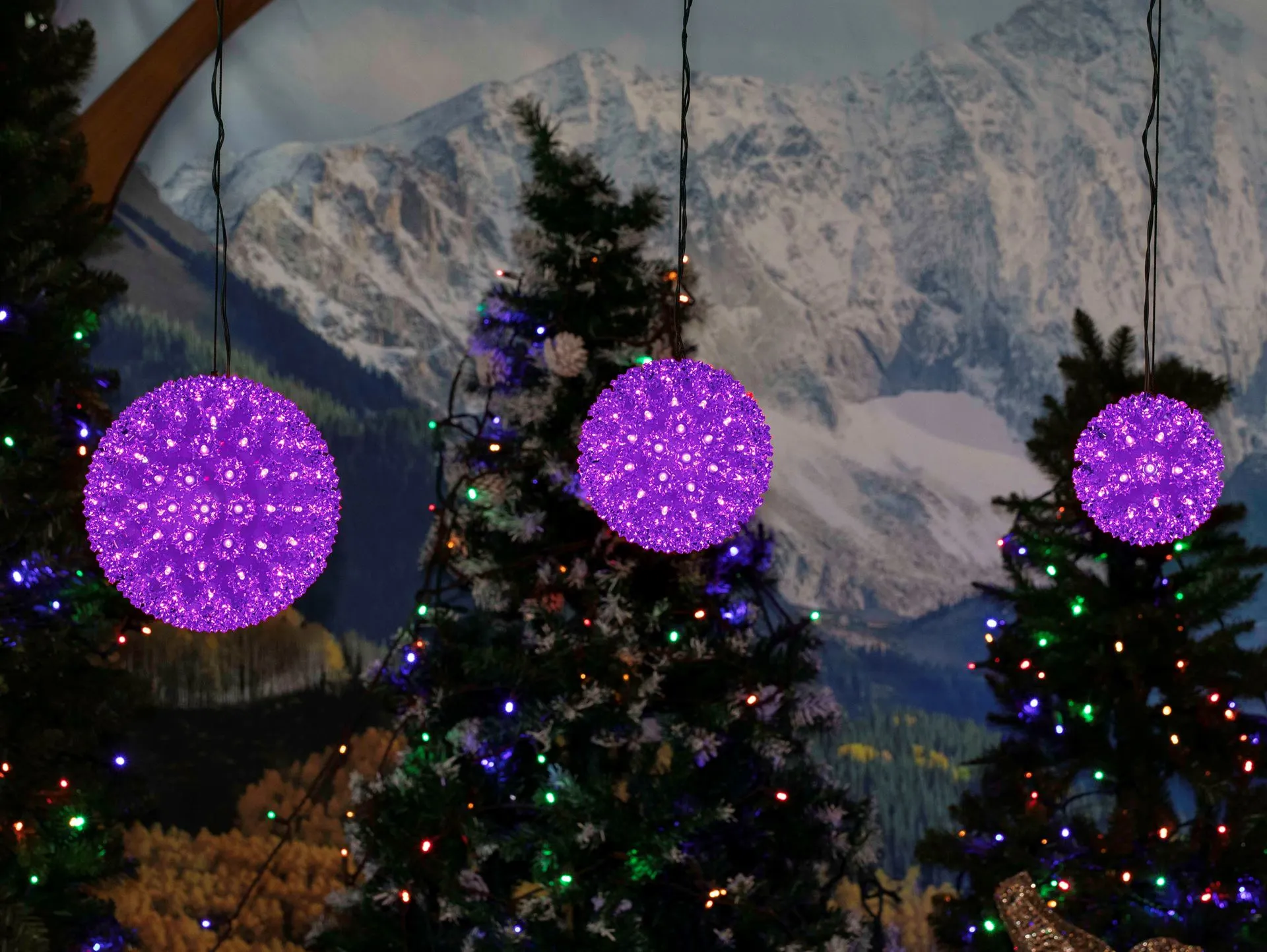 Buy a 150 light purple LED starlight sphere for both indoor and outdoor use. These durable and energy efficient purple LED Christmas light balls have the same high quality wide angle LED’s that we offer in our commercial grade LED mini lights. These 10 inch 150 light purple LED starlight spheres have a stackable male plug for powering additional spheres and a 12′ lead cord. Mix and match colors and sizes to create unique and energy efficient outdoor light displays this holiday season and for many seasons to come!
