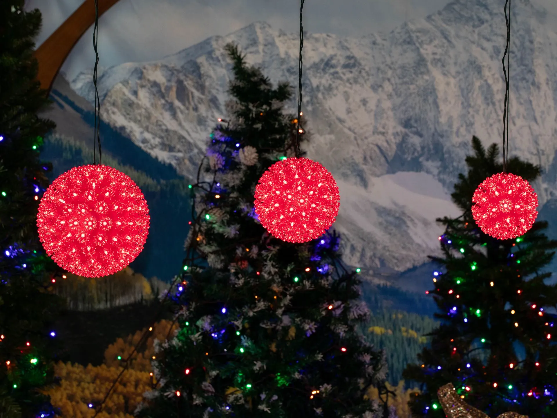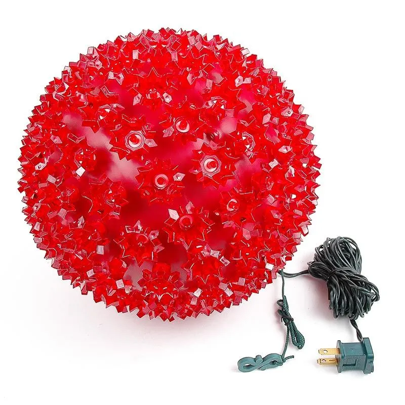 Buy a 150 light red LED starlight sphere for both indoor and outdoor use. These durable and energy efficient red LED Christmas light balls have the same high quality wide angle LED’s that we offer in our commercial grade LED mini lights. These 10 inch 150 light red LED starlight spheres have a stackable male plug for powering additional spheres and a 12′ lead cord. Mix and match colors and sizes to create unique and energy efficient outdoor light displays this holiday season and for many seasons to come!