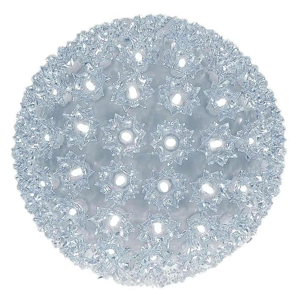 Buy a 150 light pure white twinkling LED starlight sphere for both indoor and outdoor use. These durable and energy efficient pure white LED twinkling light balls have the same high quality wide angle LED’s that we offer in our commercial grade LED mini lights. These 10 inch 150 light pure white LED twinkle starlight spheres have a stackable male plug for powering additional spheres and a 12′ lead cord. Mix and match colors and sizes to create unique and energy efficient outdoor light displays this holiday season and for many seasons to come!