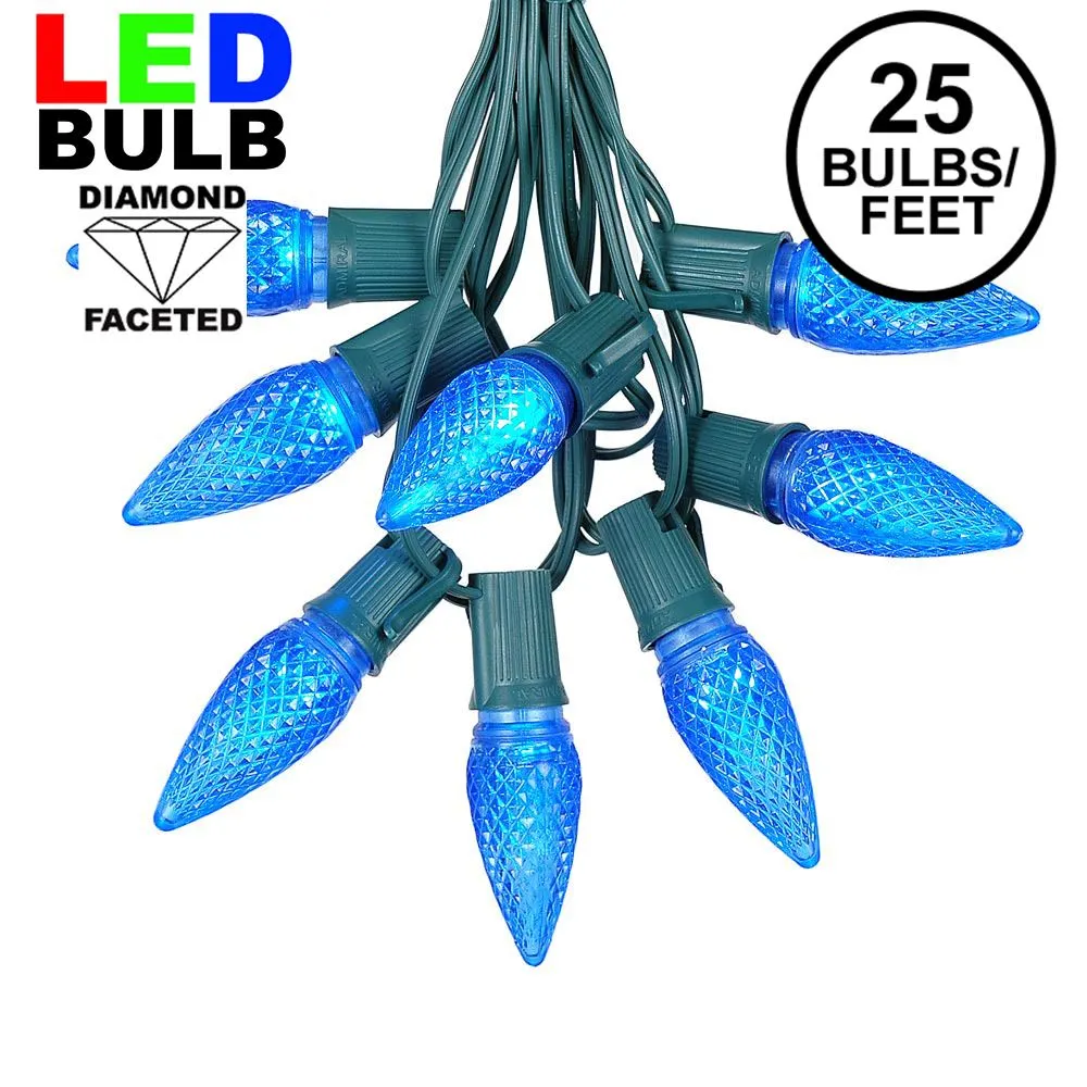 - C9 Blue LED 25 Bulb & Socket Christmas Light Set
