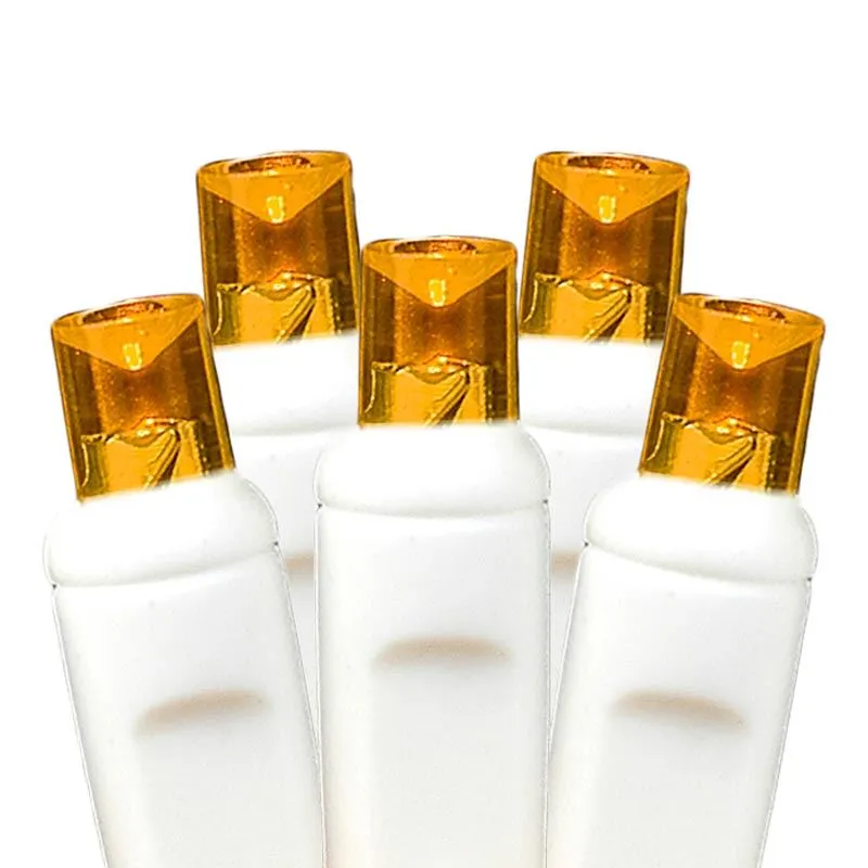 - 50 Light Amber LED Set on White Wire