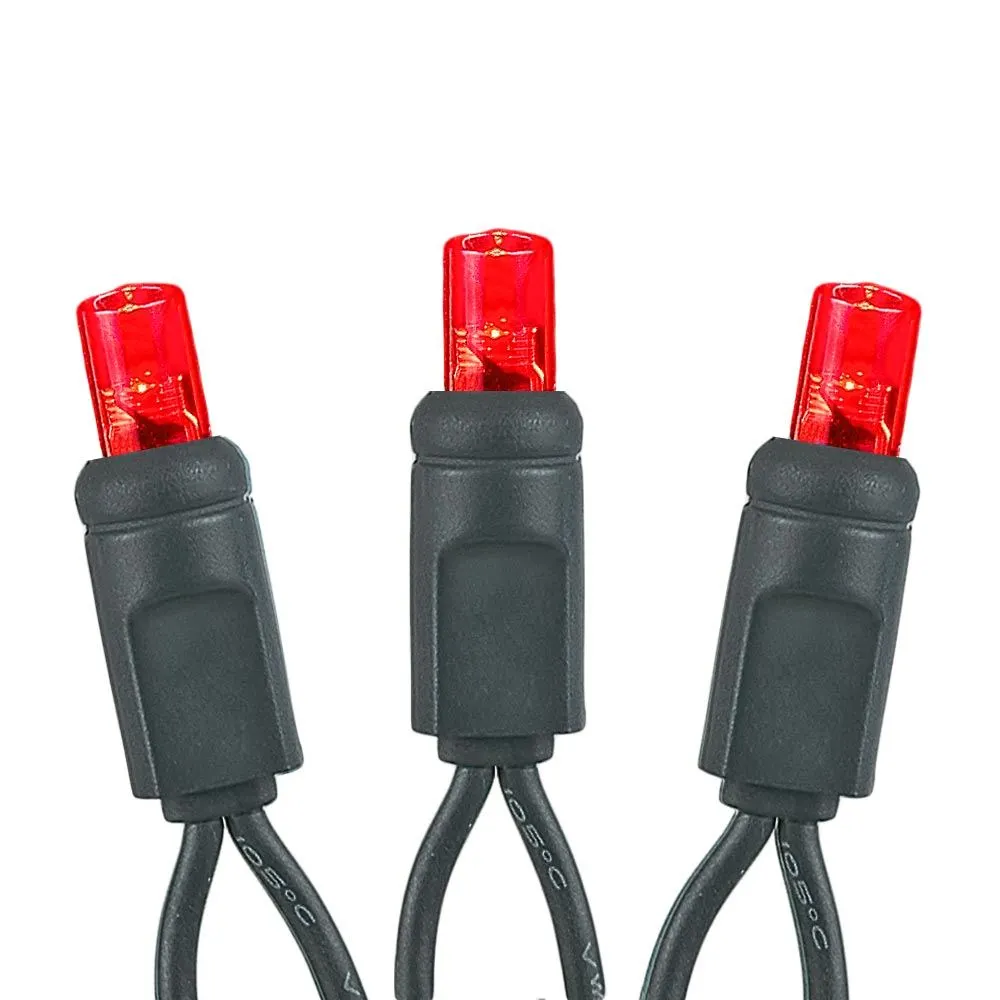 Our super bright black wire 50 light Red Wide Angle Mini Lights have 50 commercial grade LED’s on 2.5″ centers making each string 11′ long. Because these strings have non removable LED’s this eliminate failures from loose, broken or removed bulbs making these commercial grade LED Christmas lights very durable long lasting and extremely energy efficient. Each string also is full wave rectified which eliminates any flickering while making these red LED Christmas lights brighter than ordinary LED mini Lights. Each LED uses a patented concave design making these LED viewable from all angles. Energy Star qualified and UL Listed for indoor and outdoor use. Connect up to 43 strings end-to-end.