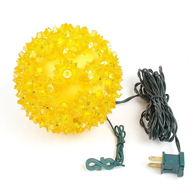 Buy a 50 light yellow LED starlight sphere for both indoor and outdoor use. These durable and energy efficient yellow LED Christmas light balls have the same high quality wide angle LED’s that we offer in our commercial grade LED mini lights. These 6 inch 50 light yellow LED starlight spheres have a stackable male plug for powering additional spheres and a 12′ lead cord. Mix and match colors and sizes to create unique and energy efficient outdoor light displays this holiday season and for many seasons to come!