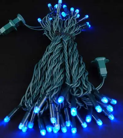 Our blue commercial grade mini LED Christmas light sets with 50 bulbs are 36′ long on 22-gauge green wire. With a 50,000-hour bulb life, these lights are perfect for lighting up Christmas trees and bushes both indoors and out. Because they only consume 4.8 watts of electricity and use a virtually indestructible LED bulb, you’ll save money on your electric bill while enjoying lights that won’t fade, chip or break. Gone are the days of trying to fix burnt out incandescent mini lights. These blue LED mini Christmas lights come with a 3-season warranty so rest assured that these LED light sets will work for many years to come.