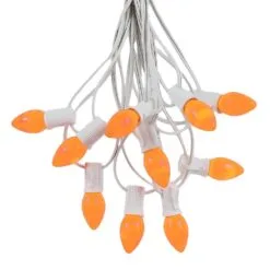 100 C7 String Light Set With Orange Ceramic Bulbs On White Wire