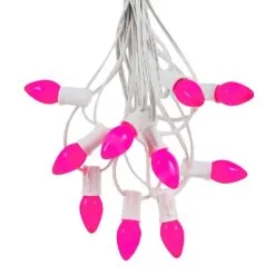 100 C7 String Light Set With Pink Ceramic Bulbs On White Wire