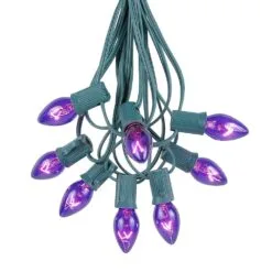 100 C7 String Light Set With Purple Ceramic Bulbs On Brown Wire