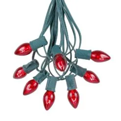 100 C7 String Light Set With Red Ceramic Bulbs On Green Wire