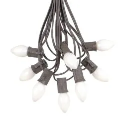 100 C7 String Light Set With White Ceramic Bulbs On Brown Wire