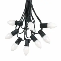 100 C7 String Light Set With White Ceramic Bulbs On Black Wire