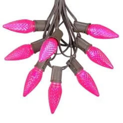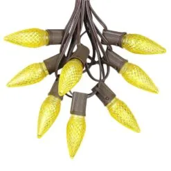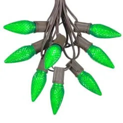 25 Light String Set With Warm White LED C9 Bulbs On Brown Wire