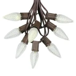 25 Light String Set With Pure White LED C9 Bulbs On Brown Wire