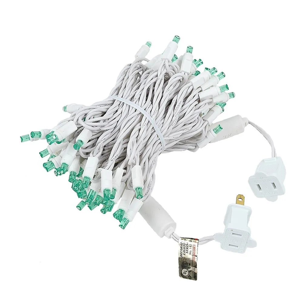 100 Green Wide Angle LED Mini Lights White Wire