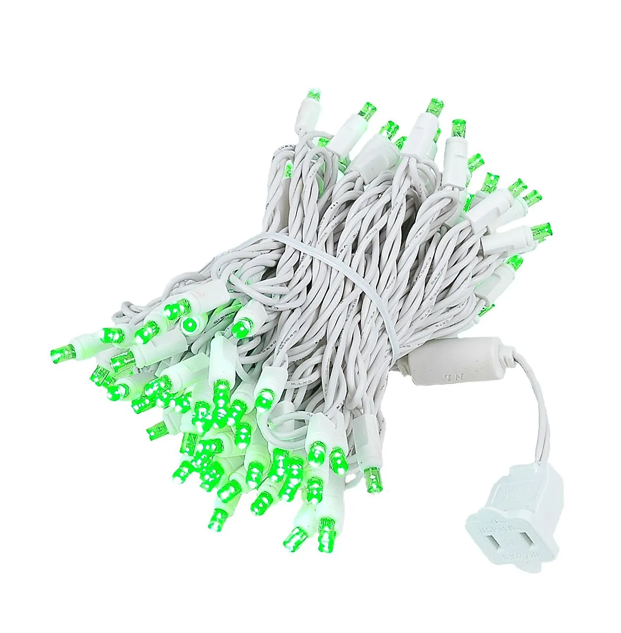 Our super bright 100 light Green Wide Angle Mini Lights have 100 commercial grade LED’s on 4″ centers making each string 34′ long. These strings have non-removable LED’s; this eliminates failures from loose, broken, or removed bulbs. These commercial grade green LED Christmas lights are very durable, long lasting, and extremely energy efficient. Each string is full wave rectified, which eliminates any flickering while making these LED Christmas lights brighter than ordinary LED mini Lights. Each LED uses a patented concave design making these LED viewable from all angles. Energy Star qualified and UL Listed for indoor and outdoor use. Connect up to 21 strings end-to-end.