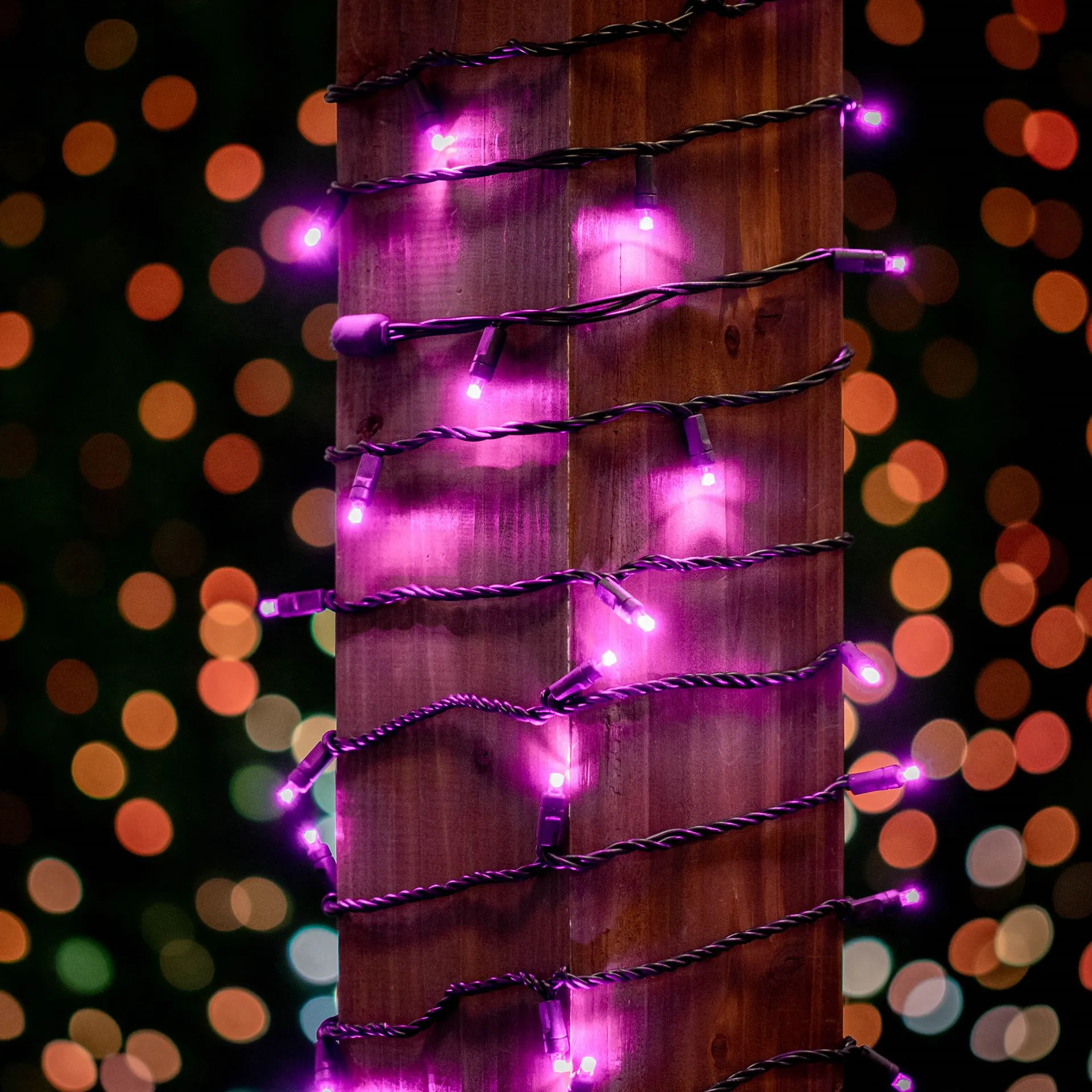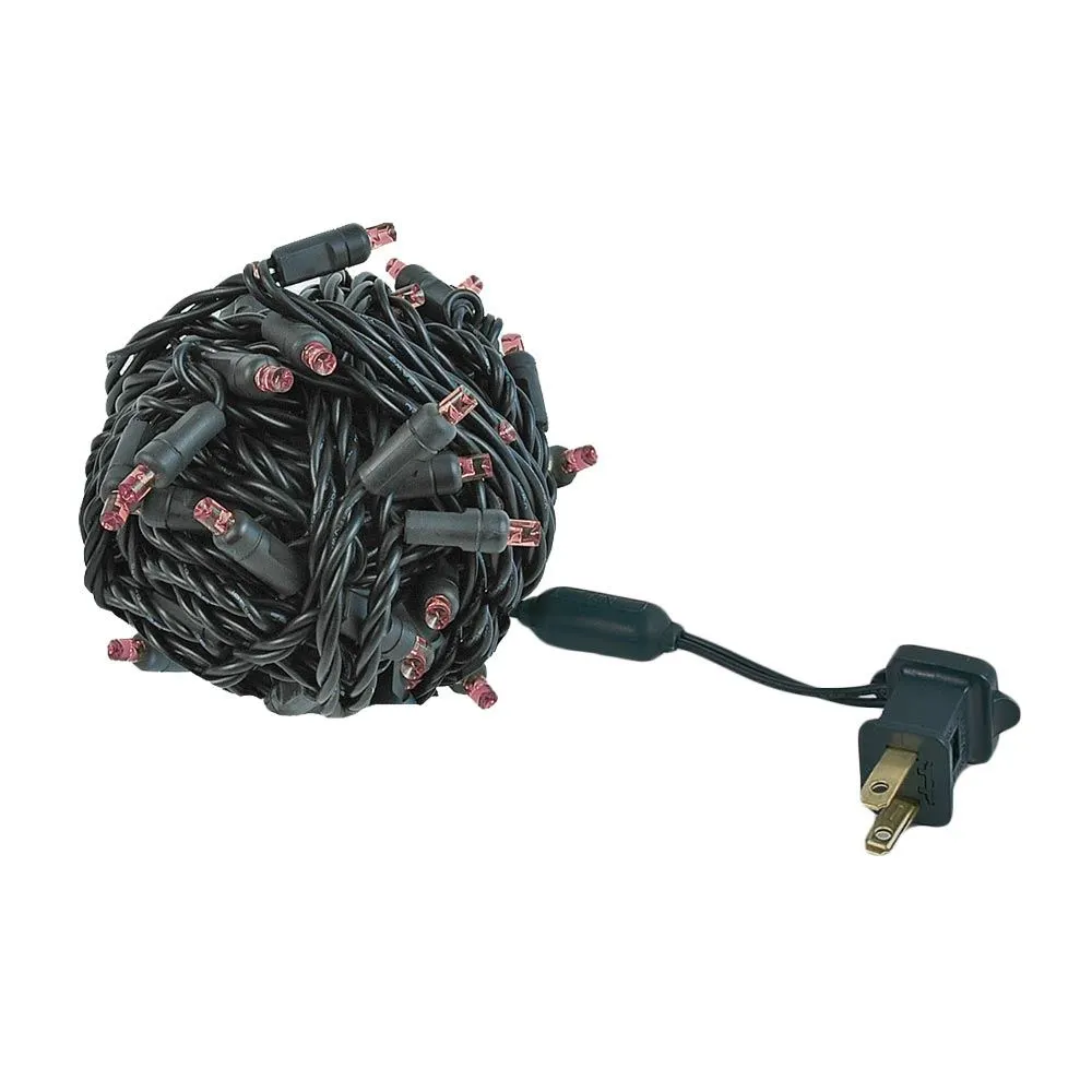 Our super bright 50 light Pink Wide Angle Mini Lights on black wire have 50 commercial grade LED’s on 6″ centers making each string 25′ long. Because these strings have non removable LED’s this eliminate failures from loose, broken or removed bulbs making these commercial grade LED Christmas lights very durable long lasting and extremely energy efficient. Each string also is full wave rectified which eliminates any flickering while making these LED Christmas lights brighter than ordinary LED mini Lights. Each LED uses a patented concave design making these LED viewable from all angles. . Energy Star qualified and UL Listed for indoor and outdoor use. Connect up to 43 strings end-to-end.