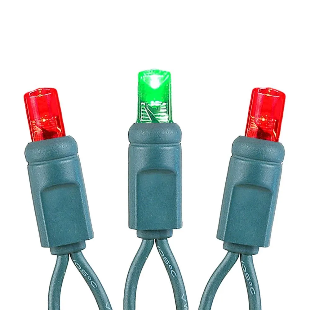 50 Red and Green Wide Angle LED Mini Lights on Green Wire