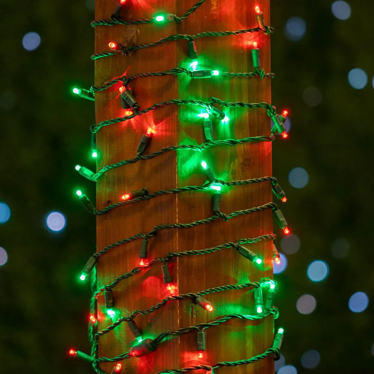 Our super bright 50 light Red and Green Wide Angle Mini Lights on green wire have 50 commercial grade LED’s on 6″ centers making each string 25′ long. These strings have non removable LED’s; this eliminates failures from loose, broken or removed bulbs making these commercial grade LED Christmas lights very durable, long lasting and extremely energy efficient. Each string also is full wave rectified which eliminates any flickering while making these LED Christmas lights brighter than ordinary LED mini Lights. Each LED uses a patented concave design making these LED viewable from all angles. Energy Star qualified and UL Listed for indoor and outdoor use. Connect up to 43 strings end-to-end.