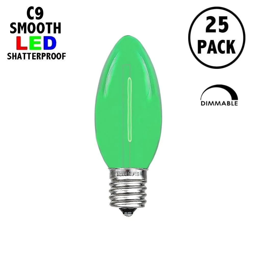 - 25 Pack of Green C9 LED Plastic Filament Bulbs, E12 Base