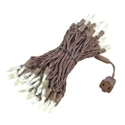 50 LED Warm White LED Christmas Lights 11′ Long On Brown Wire