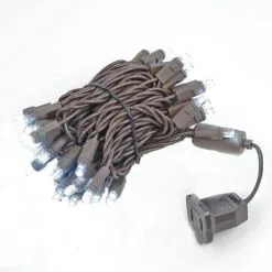 50 LED Pure White LED Christmas Lights 11′ Long On Brown Wire