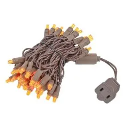 Amber/Orange Christmas Mini Lights 100 Light 50 Feet Long On Brown Wire