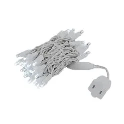 50 LED Pure White LED Christmas Lights 11′ Long On White Wire