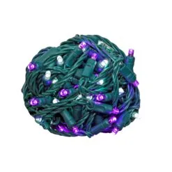 Commercial Grade Wide Angle 50 LED Purple/Pure White 25′ Long On Green Wire