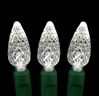 Pure White 100 LED C6 Strawberry Mini Lights Commercial Grade Green Wire