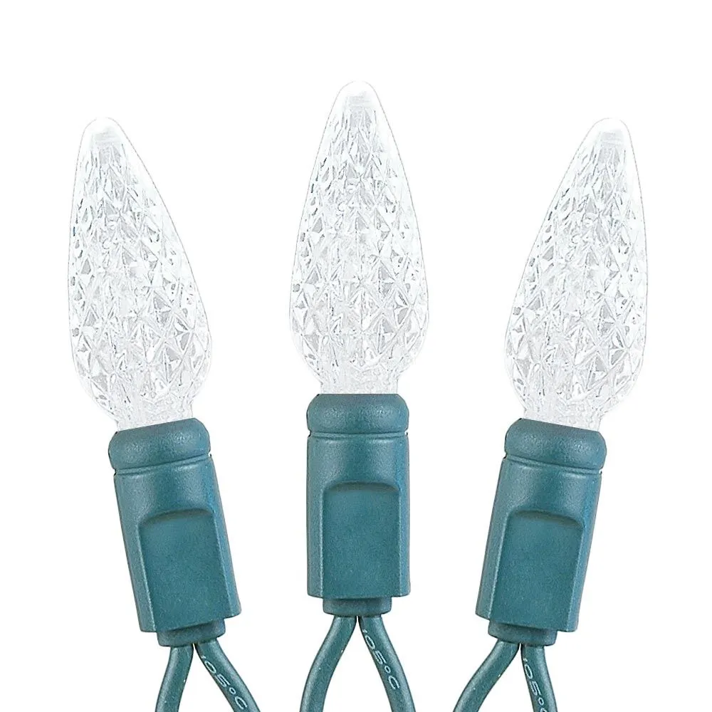 Our 70 light Commercial Grade Pure White C6 LED Strawberry Lights are sure to brighten up any holiday display or special event. These high quality LED Christmas light sets are built using nonremovable high quality super bright LED’s that will last several years. Because these sets use one-piece non-removable bulbs, failures due to broken, damaged, removed, or burnt-out bulbs, are eliminated. These Pure White LED mini light strings have 70 LED’s spaced every 4″ making them 24′ long. Our C6 LED mini Christmas lights have high quality, built-in, full wave rectifiers, making them extremely bright without any flicker. Connect up to 43 strings end-to-end. UL Listed for indoor and outdoor use and Energy Star qualified.