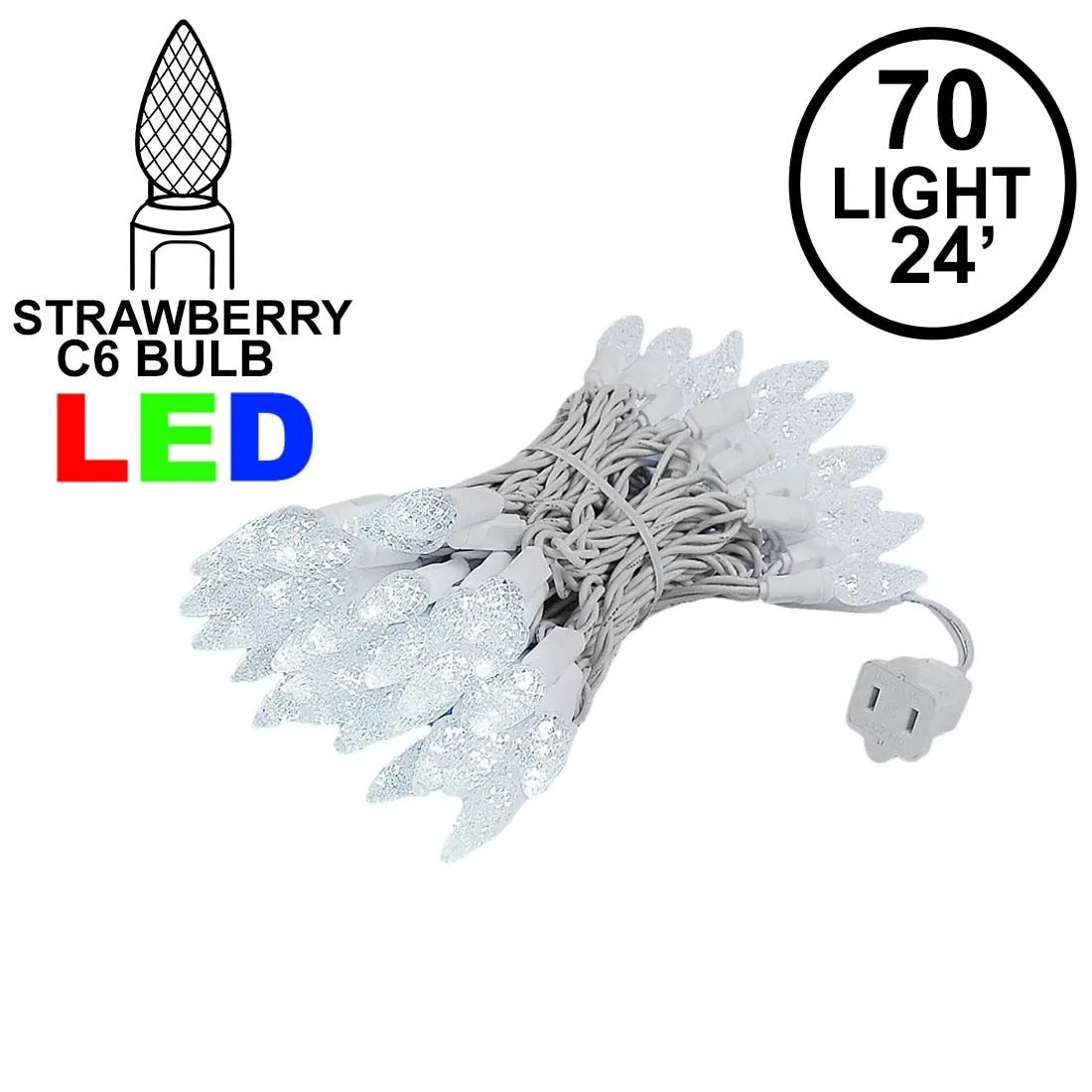 70 Bulb C6 Pure White LED Strawberry Mini Lights on White Wire