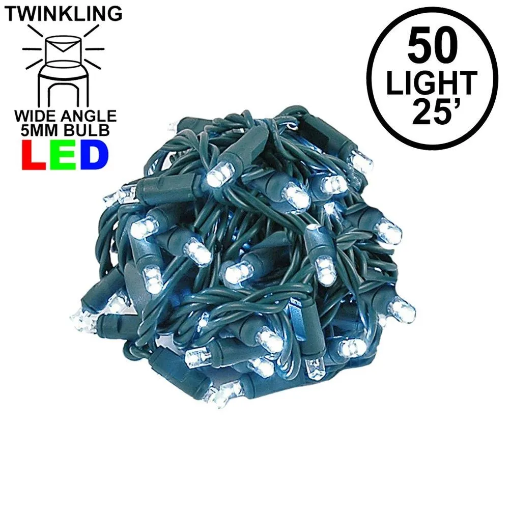 Random Twinkling 50 Pure White Wide Angle LED Mini Lights Green Wire