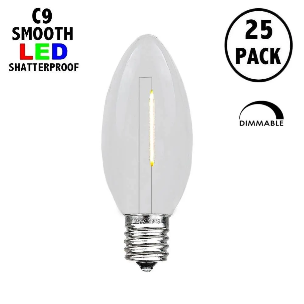 - 25 Pack of Warm White C9 LED Plastic Filament Bulbs, E17 Base
